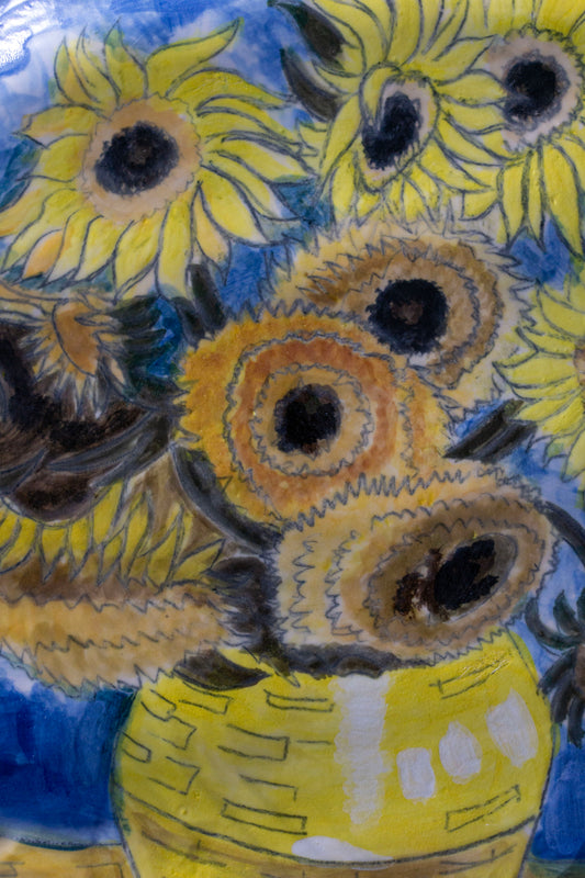 Van Gogh Sunflowers Hand Painted Ceramic Plate 10” – Floral Art Dinner Plate, Decorative Gift for Art Lovers
