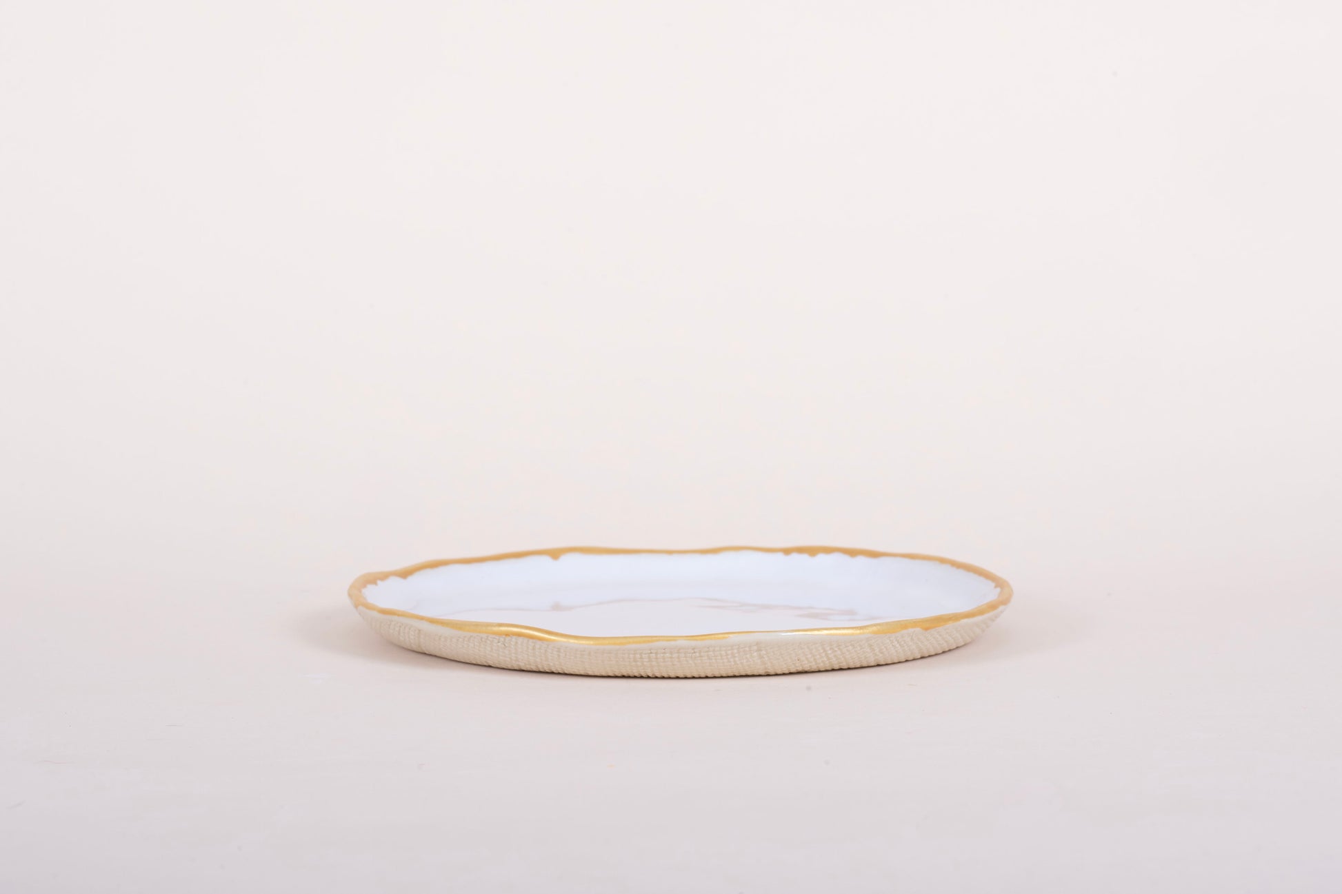 The form is calm, but the line of gold sings — a quiet ornament that catches the eye like a moment of reflection at the table.