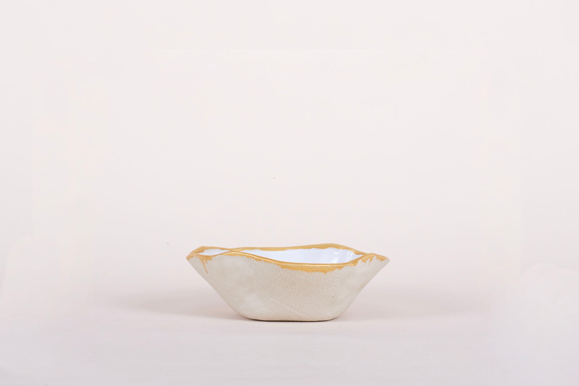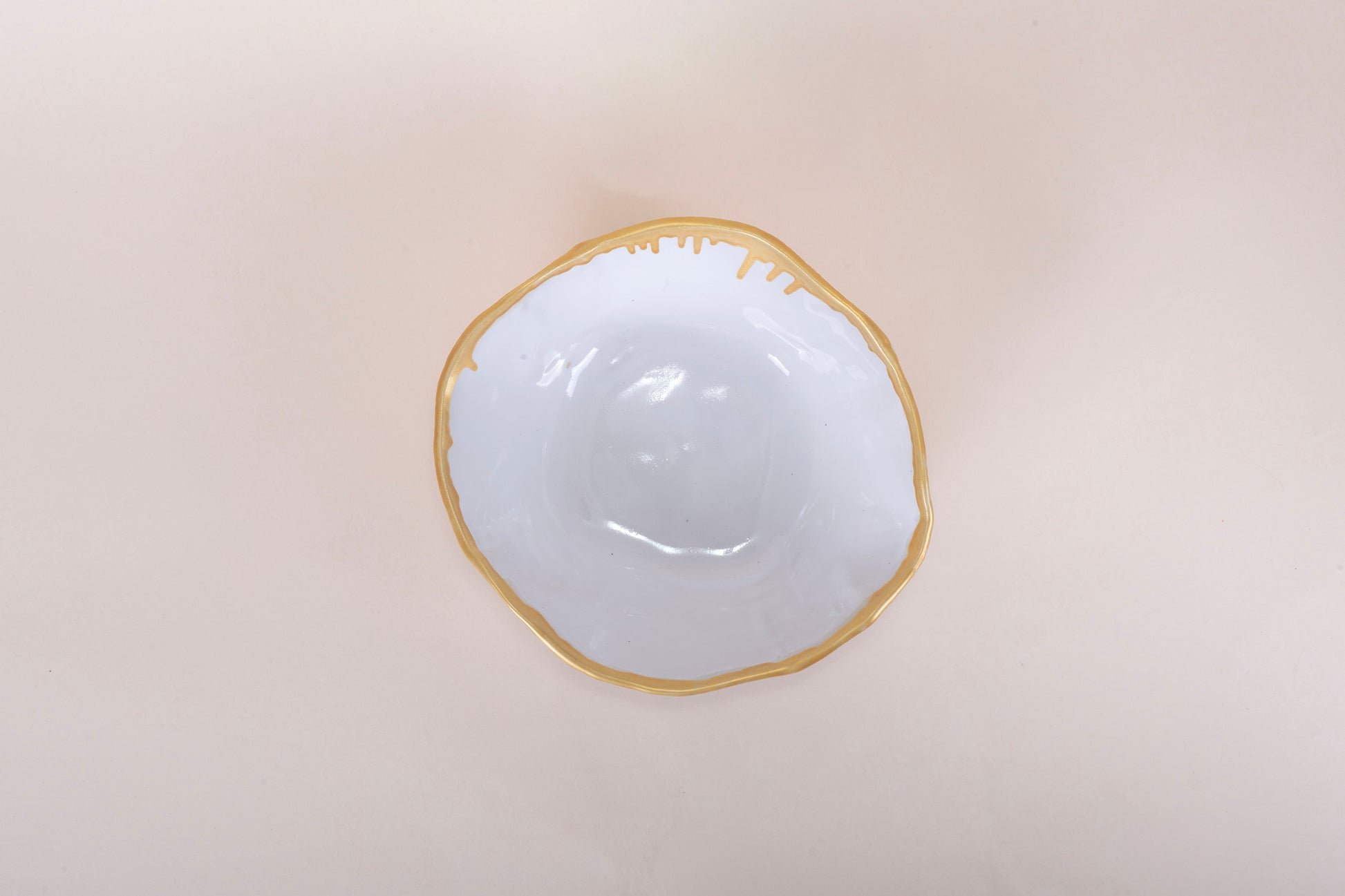 The form is calm, but the line of gold sings — a quiet ornament that catches the eye like a moment of reflection at the table.