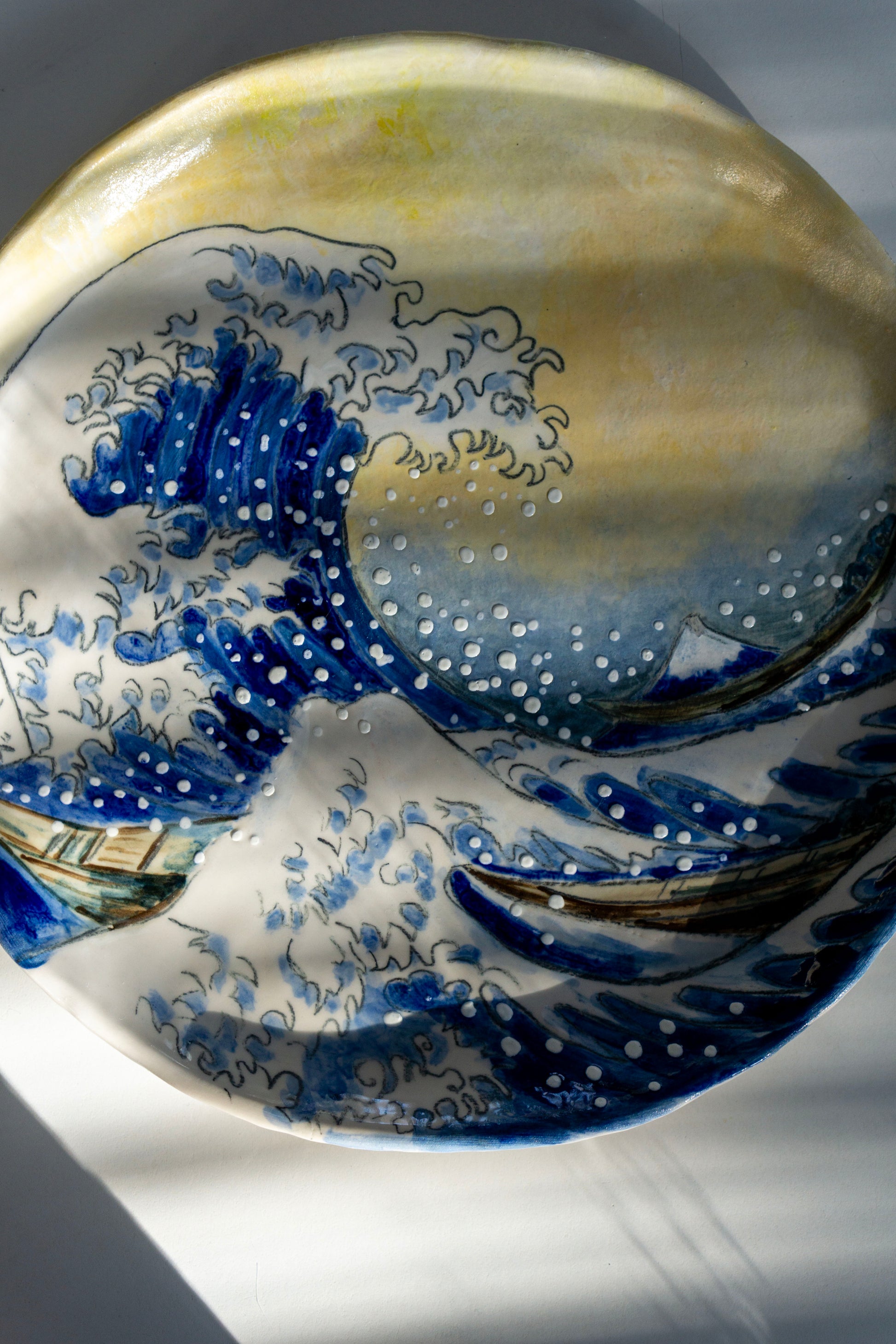 The dynamic movement of the wave and its timeless elegance are translated into a functional ceramic piece that blends fine art with everyday use. Each plate is individually painted by hand, making every piece a unique work of art.