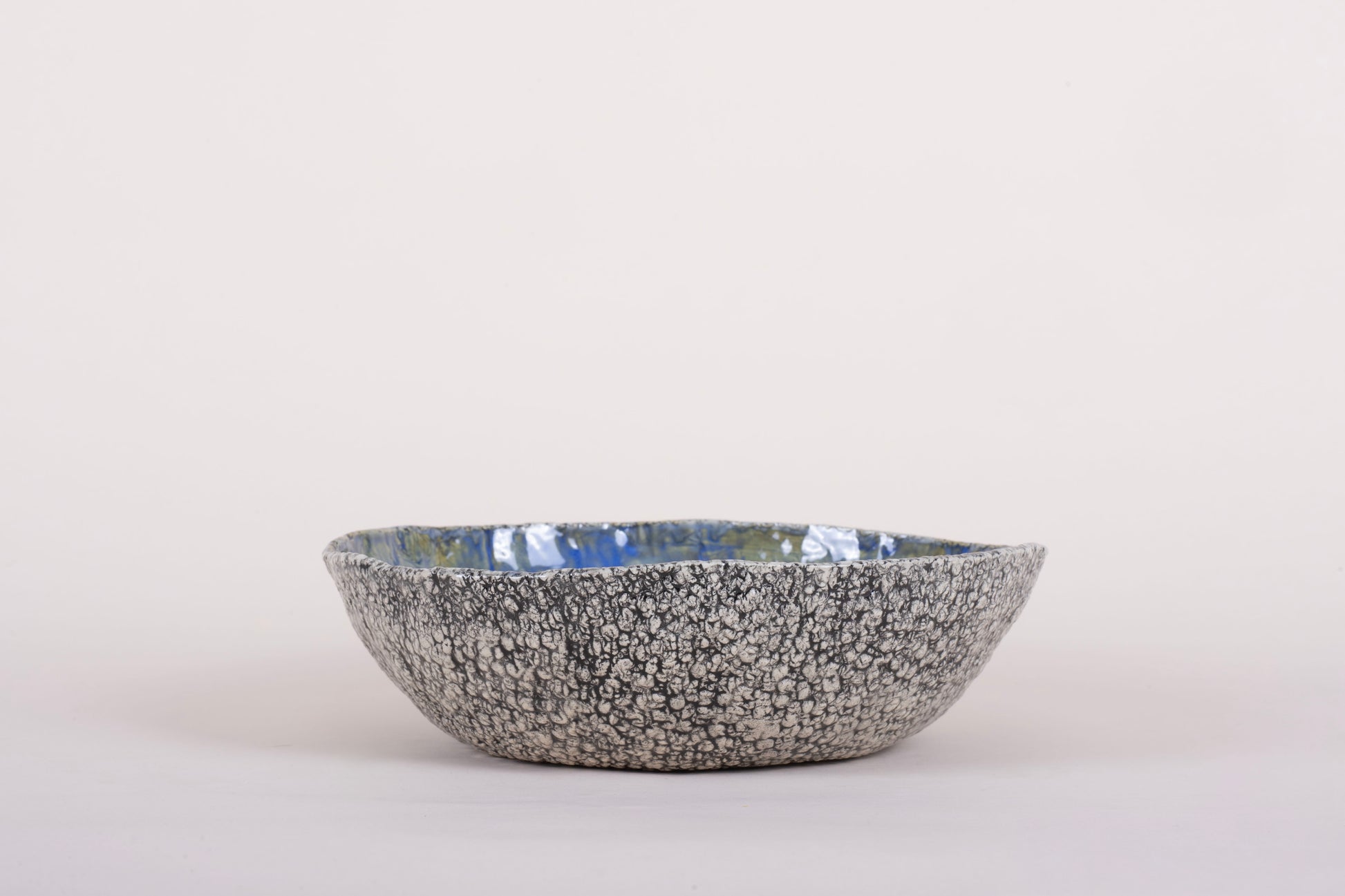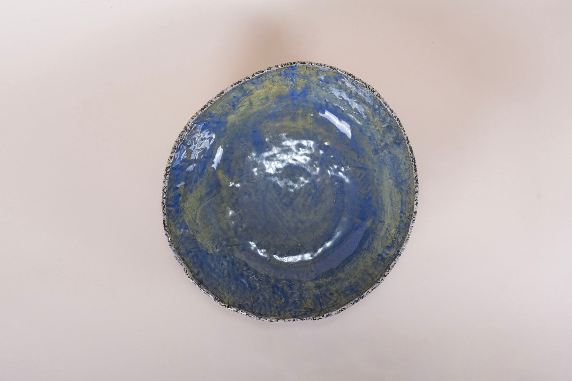 Its surface shifts gently under light — dark as deep water, textured like sand. Ideal for seafood, but never literal — a piece that lets plating breathe like tide between rocks.