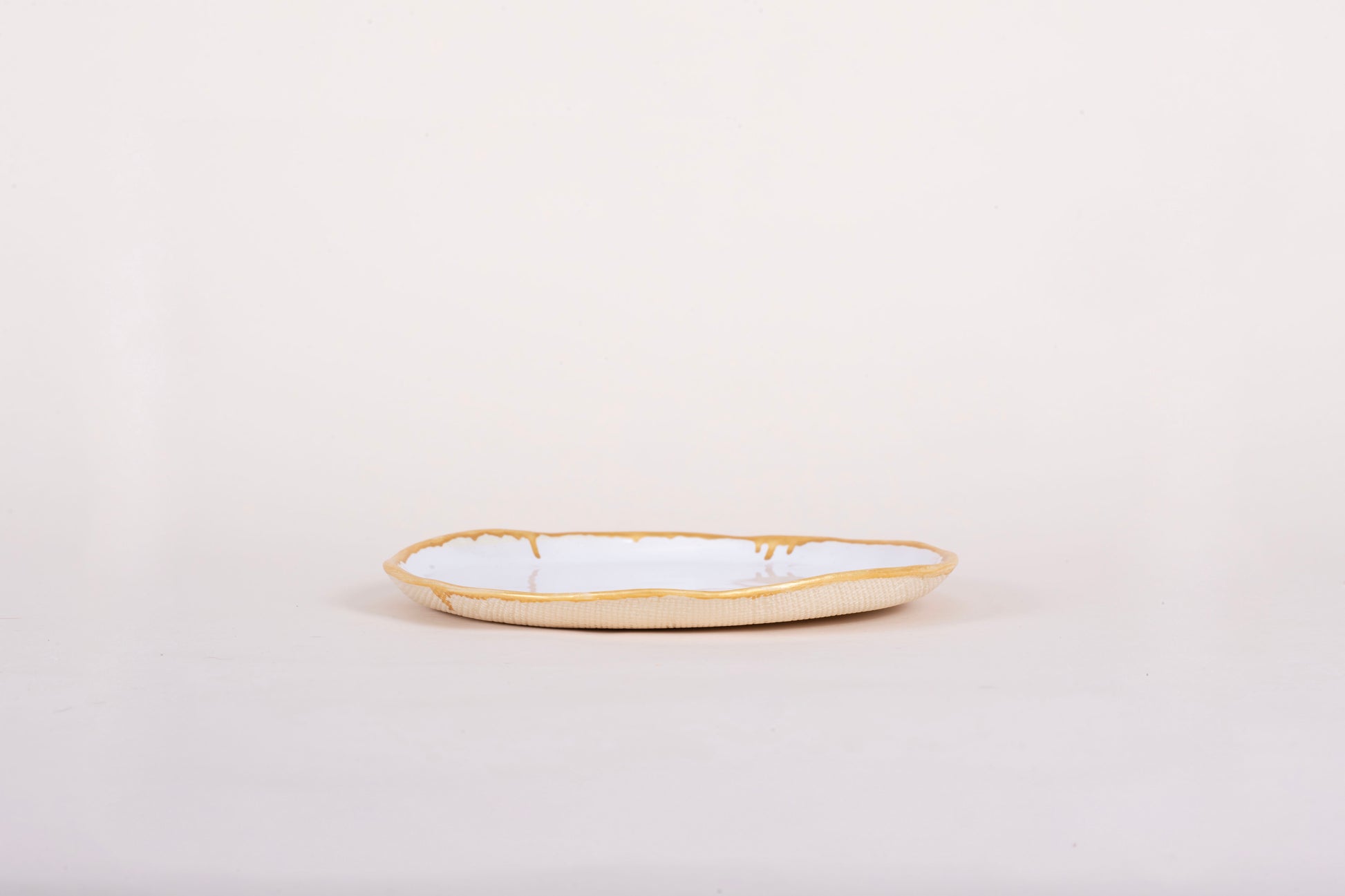 The form is calm, but the line of gold sings — a quiet ornament that catches the eye like a moment of reflection at the table.